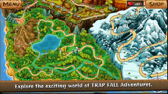 Welcome intrepid explorer, the world of TRAP FALL Adventures awaits. Use your quick wit and fast reflexes to stay alive as you navigate over 100 levels in this puzzle adventure game. Be warned, there are angry gorillas, rolling boulders and other nasty surprises lurking around every corner. Give it a try and let us know what you think!