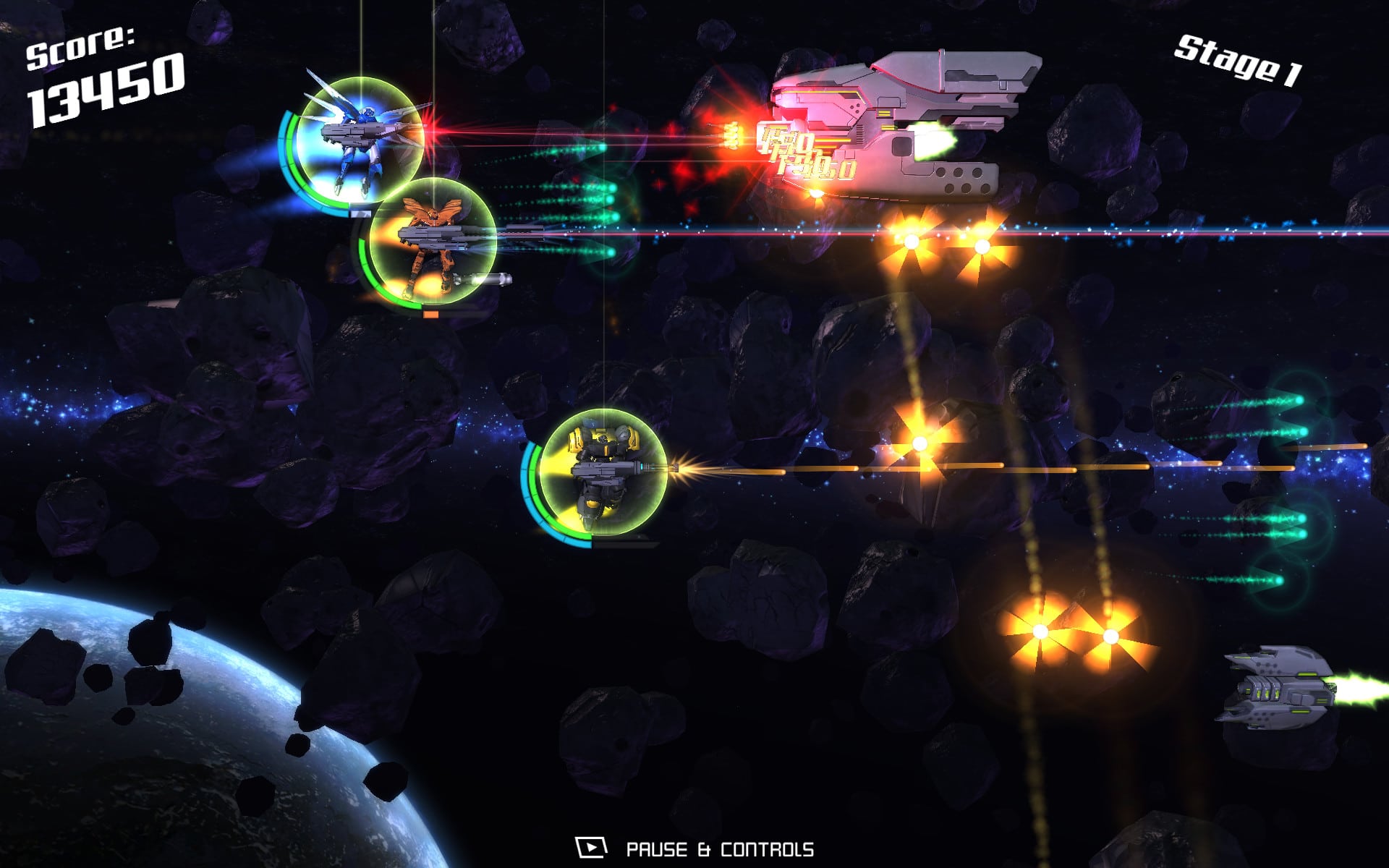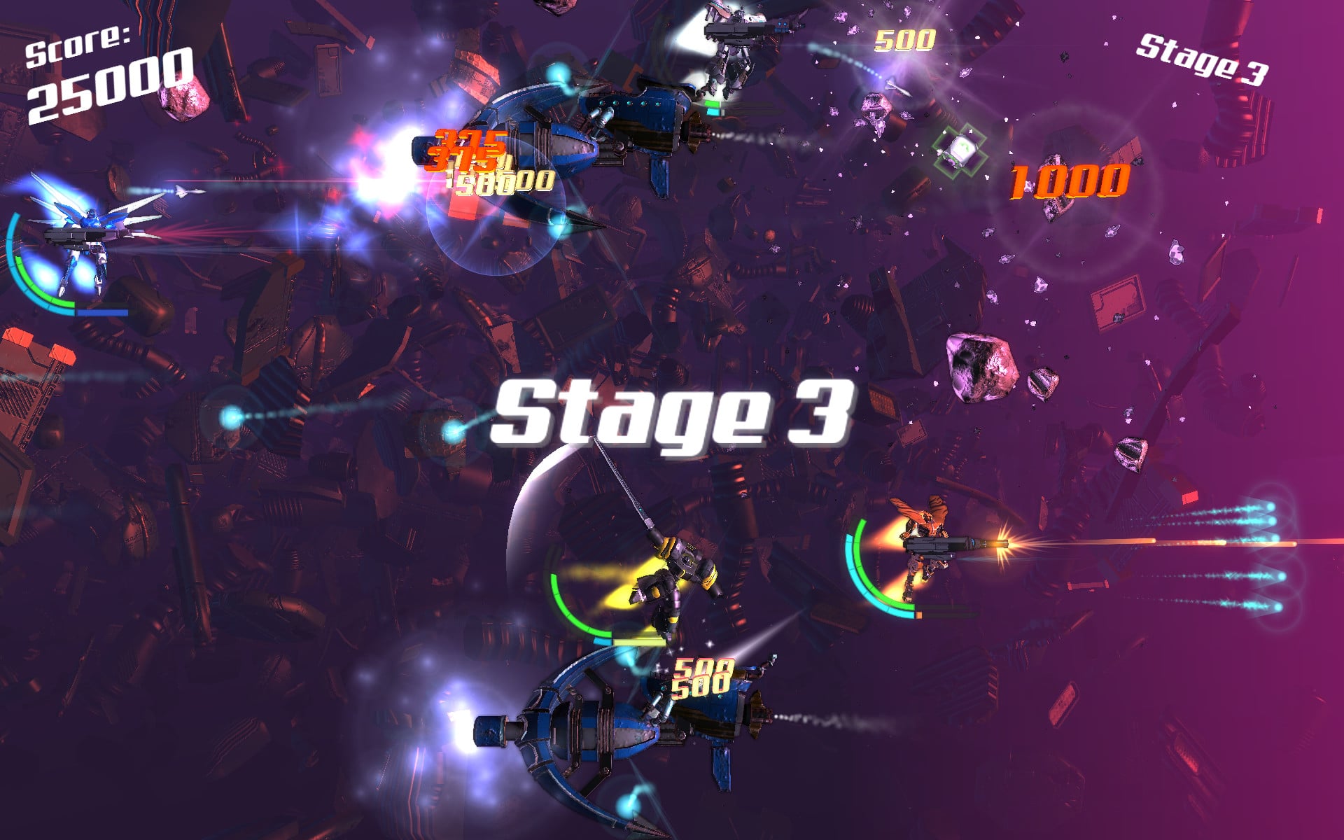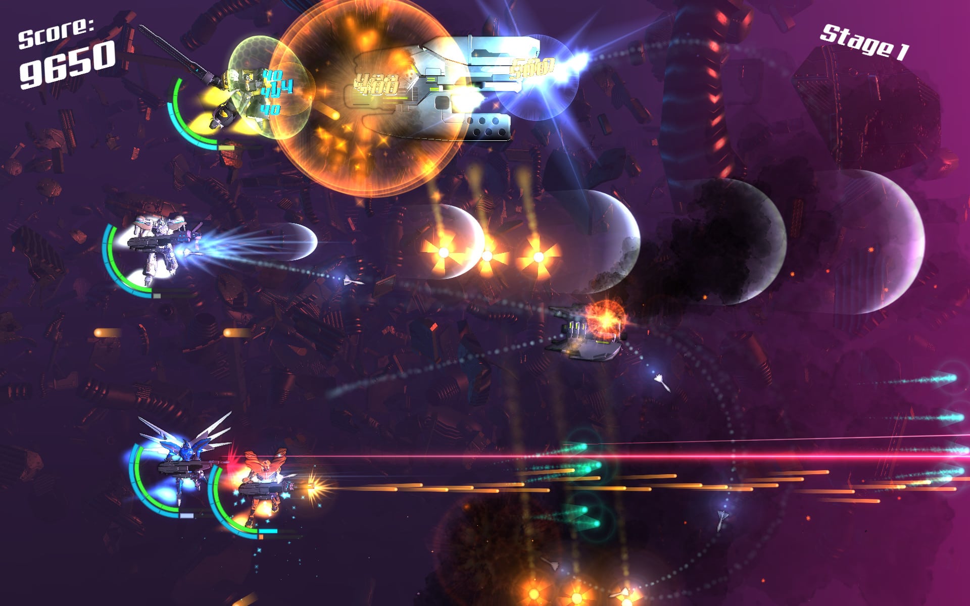 Stardust Galaxy Warriors was designed to bring players back in touch with the shoot-’em-ups (SHMUPs) of old, while bringing a fun experience to users who want to kick back on the couch with friends to laugh and play. It was also designed to bring a uniquely otaku/Mech twist (with a fair dose of tongue-in-cheek cheesiness) to the genre.