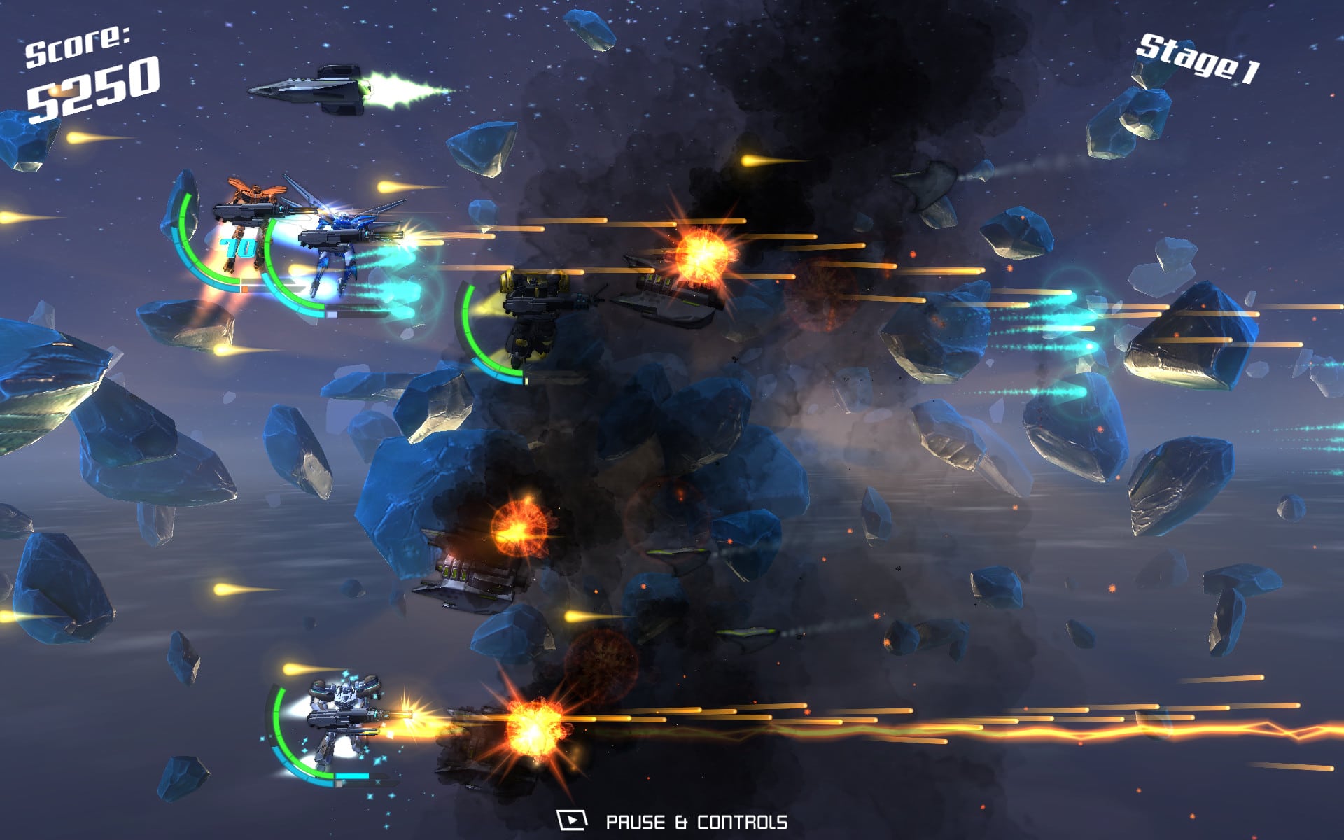 Stardust Galaxy Warriors features 3 game modes, each filled with immediately accessible fun: a 30-stage campaign (swarming with hellish clouds of unique enemies and bosses), Gauntlet Mode (an endless high-score race), and Challenge Mode, where players can play with unique and challenging rulesets for added difficulty. All modes support a fast-paced couch co-op option (with extensive controller support) for up to 4 players.