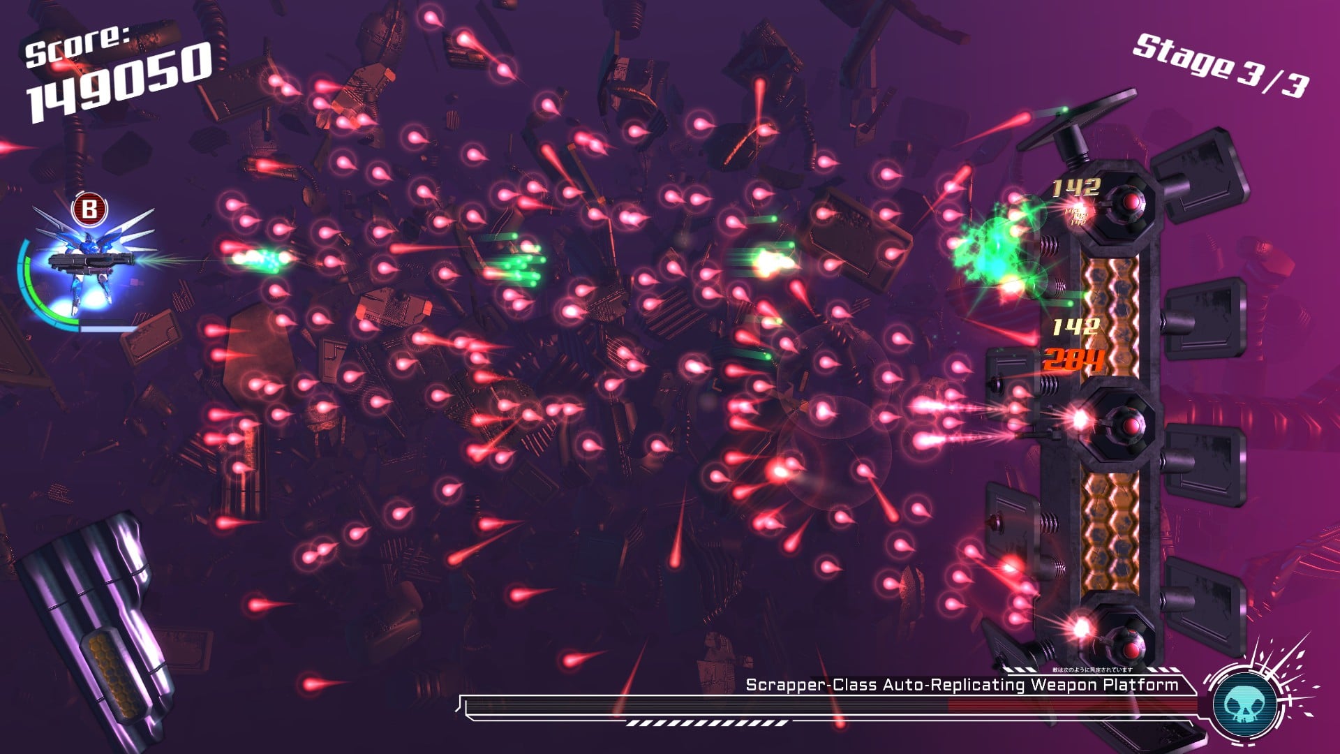 In-game, your mechs have a customizable weapon and upgrade system, and audiovisual excellence with music, sound, animations, and visual effects built together from the ground up to perfectly enhance the frenzied, bullethell atmosphere.