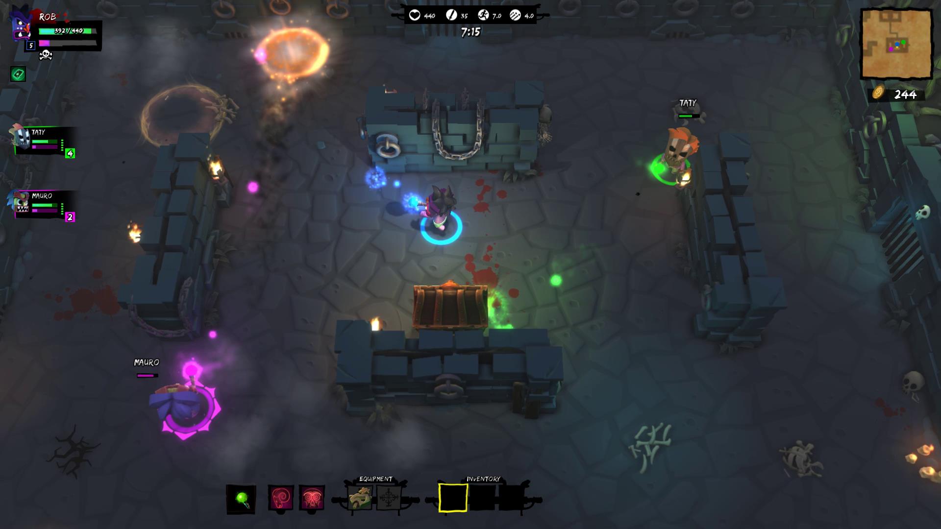 One thing you can always count on from Nicalis is variety and quality. They seem to constantly be churning out new and interesting products, especially for those who love retro, hardcore games. Though they are perhaps most well known for Binding of Isaac and Cave Story, the game coming out next for them is Full Mojo Rampage. Slated to come out to XBox One and PS4 this Spring, it looks like the love child of Binding of Isaac and voodoo dark magic. It’s hard to put into words beyond that, but suffice to say, it should be a very fun, complex and crazy title. With that in mind, here is the latest bunch of screenshots from the game. Stay tuned to oprainfall for more Mojo goodness as it hits!