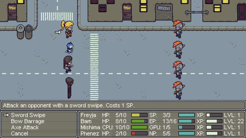Towards The Pantheon is a 2D top down role-playing game in development that centers around four characters who group together to defeat the Terrorforce, a malicious group who is using divide and conquer tactics to conquer the world. Players journey through lush forests, freezing plains of snow, dystopian cyberpunk cities, and barren wastelands to find and defeat the source of the Terrorforce at The Pantheon. Drawing inspiration from a variety of classics ranging from Paper Mario, Silent Hill, and Golden Sun, Towards The Pantheon is a personal game that is currently aiming for a Summer 2017 release.