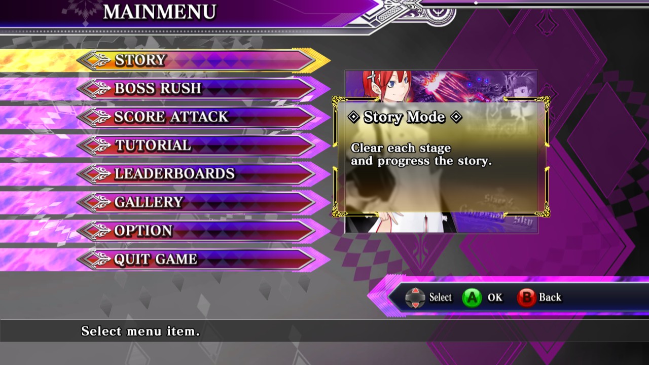 In addition, there are many contents to enjoy other than the Story Mode such as the Rush mode and the Score Attack Mode. There is a Tutorial Mode for beginners, Leaderboard for online ranking, and Gallery Mode for viewing cut-in images and other graphics.