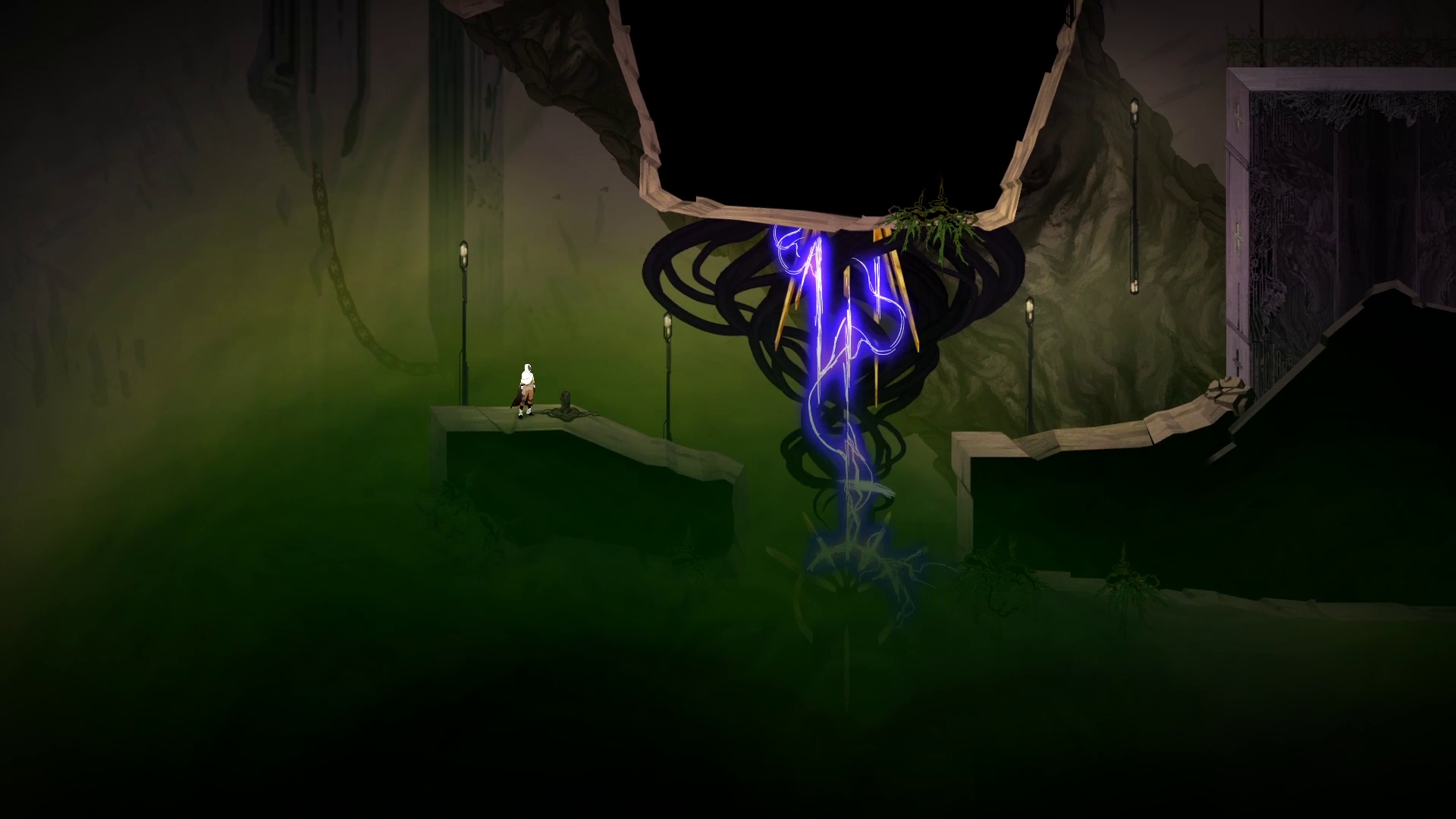 One thing that immediately stuck out to me was just how beautiful the game looked. Very smooth hand drawn animations blended perfectly with the detailed otherworldly backgrounds I explored. While searching through the level I was thrown into, I was impressed with just how foreign everything felt. Tentacles would appear and disappear randomly on platforms, the backgrounds of the stage would glow yellow, strange purple waterfalls would push you downward, and everything about this world gave off an eerie vibe that I was really into. It also helps that the sound design is equally eerie. The ambient music helps set an unsettling mood that helps convey the atmosphere, while the almost painful sounding screams of the enemies you’ll be fighting can be heard in the distance. As you get closer to them, however, their screams go from sounding like they’re in pain to sounding like more like a sinister monster that wants to kill you.