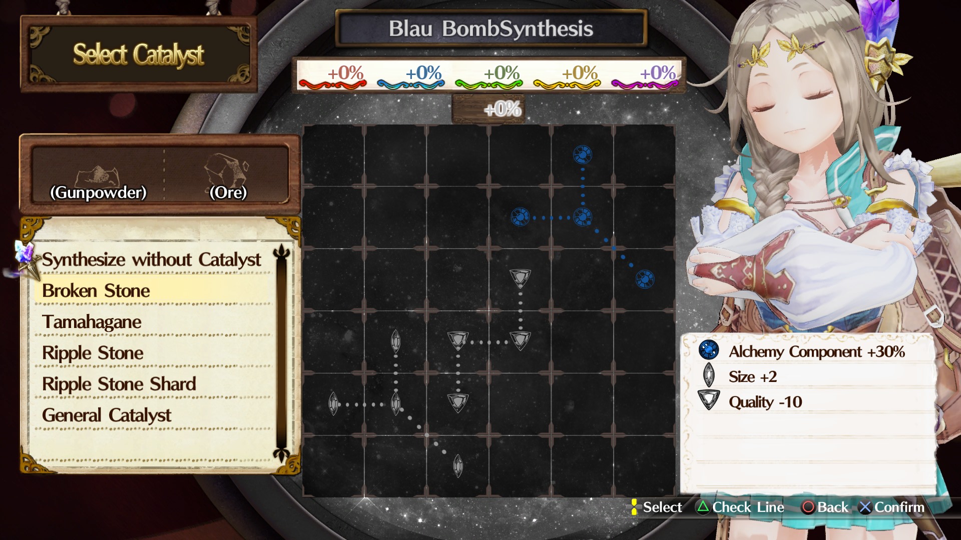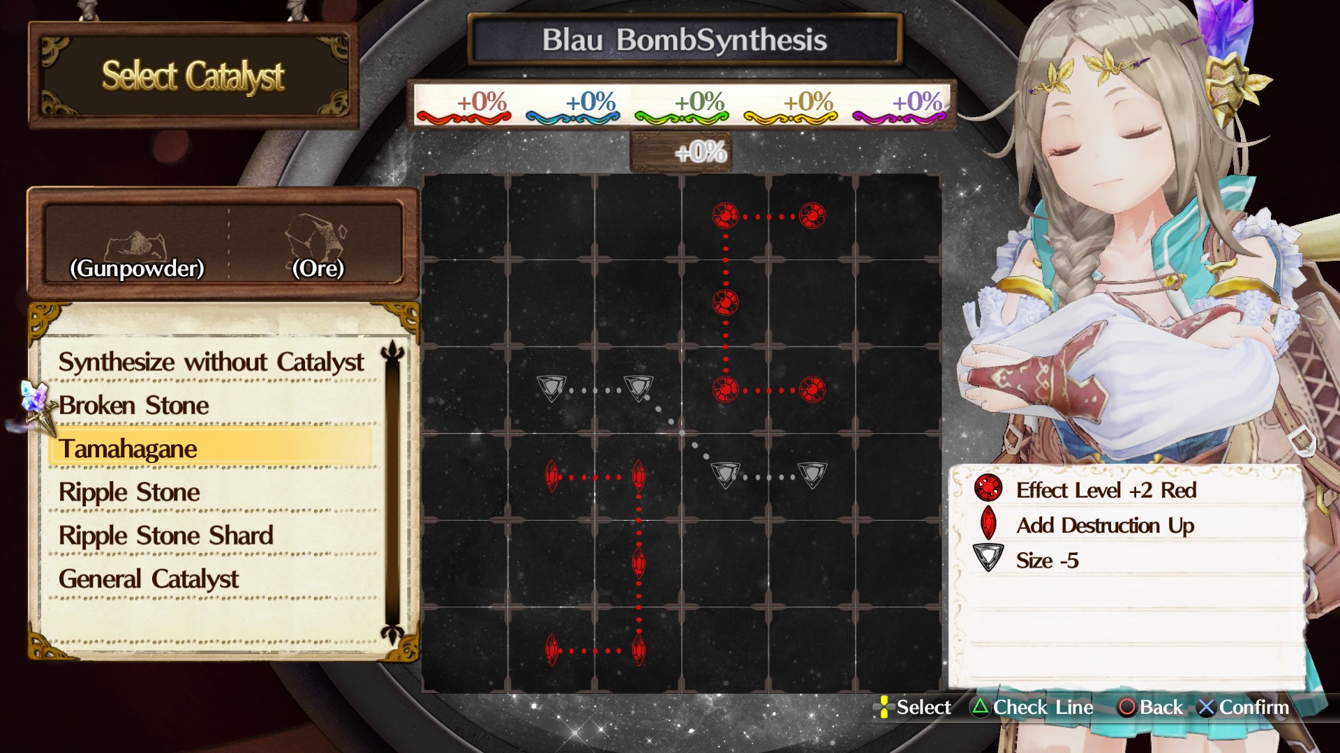 The Synthesis system in Atelier Firis: The Alchemist and the Mysterious Journey features exciting new additions to suit its newly nomadic nature. For example, Mass Synthesis allows Firis to create large items to overcome obstacles in her path, such as building a bridge to cross a river, or a boat to cruise across a lake. Deciding what to build not only changes the appearance and accessibility of various locations, but can also affect the course of the story! Furthermore, the effectiveness of items can be amplified with the use of special Catalysts, which grant bonuses and provide greater perks to the end result.