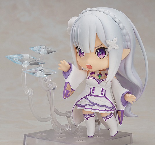 From the anime series ‘Re:ZERO -Starting Life in Another World-‘ comes a Nendoroid of the half-elf heroine, Emilia! Her characteristic outfit has been faithfully converted into cute Nendoroid size, and she comes with three face plates including a standard expression, an angry expression as well a crying expression based on the scene from the final episode.