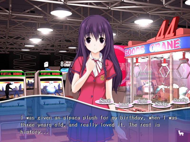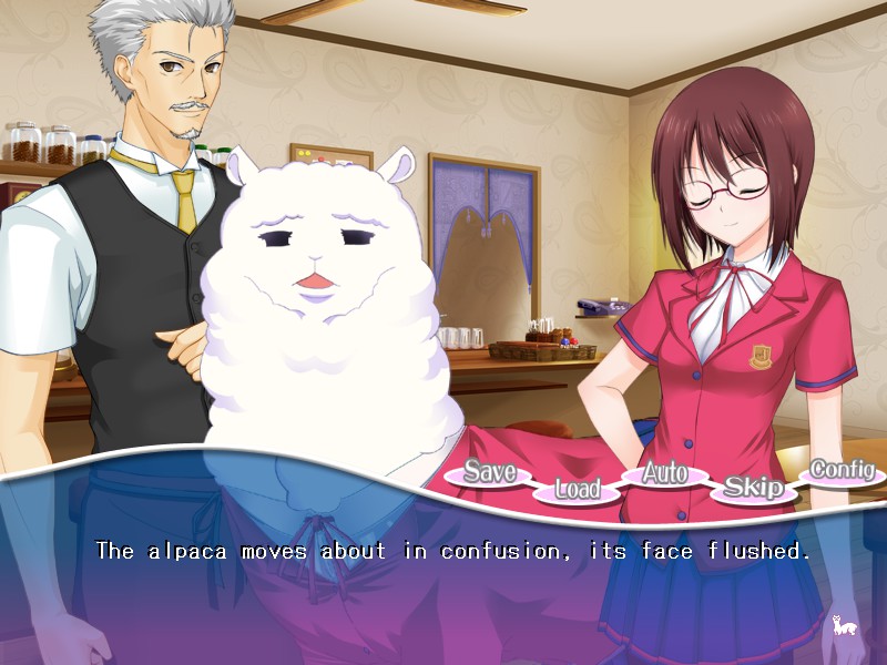 The plot is simple. You play a high schooler named Kazuma who is dating an overachiever named Yukari. Everything’s all fine and normal until you visit the Alpaca Kingdom on Yukari’s birthday. It’s an alpaca farm, which makes a great dating spot seeing as how both characters really love alpacas, Kazuma maybe a bit too much. On the train back you fall asleep, and you wake up to your girlfriend being seemingly turned into an alpaca. Your relationship with her slowly starts to change from a normal and happy couple, to a distant one as he has a tough time dealing with the fact that she’s now an alpaca.