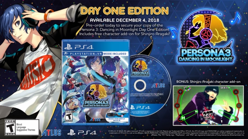 IRVINE, Calif. – September 17, 2018 – Persona 3: Dancing in Moonlight and Persona 5: Dancing in Starlight are launching on December 4, 2018! And good news for those who pre-order either (or both!) of the Day One editions: each features a fan-favorite Persona character you can add to your dance roster, along with their exclusive tracks! Check out the pre-order bonus trailer here.