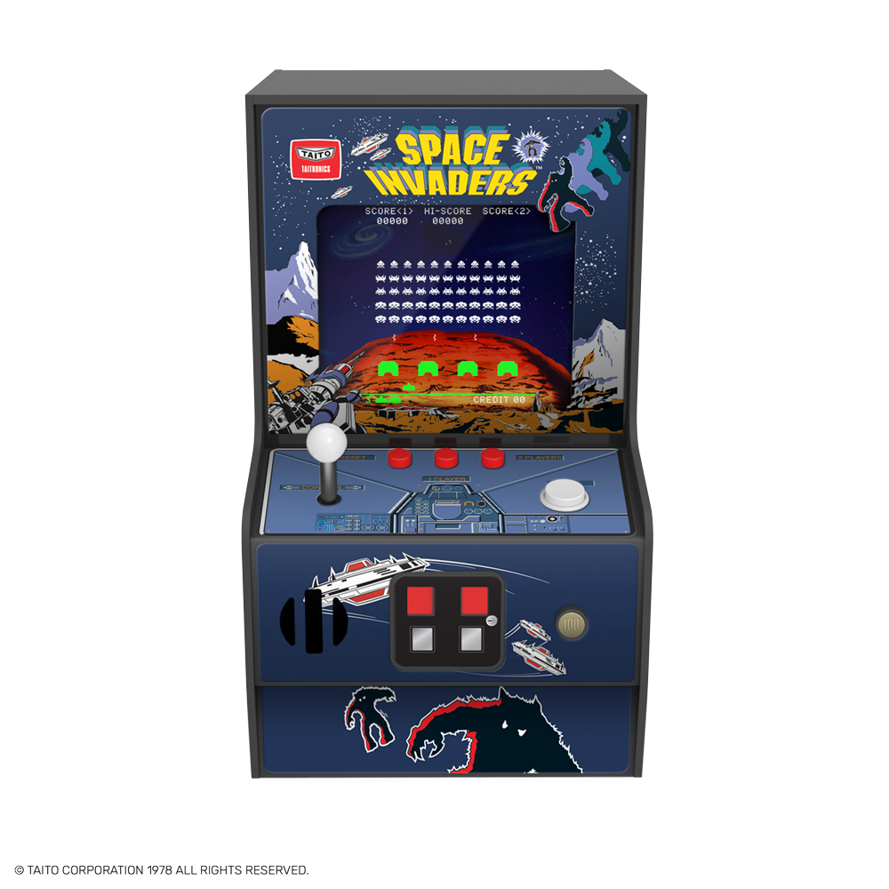 - SPACE INVADERS Micro Player [MSRP: $39.99]: My Arcade unveils the latest product created in collaboration with its lasting partner Taito: the SPACE INVADERS Micro Player. This miniature, playable SPACE INVADERS arcade cabinet stands at 6.75” and features a 2.75” screen, volume control and iconic artwork from the original cabinet.